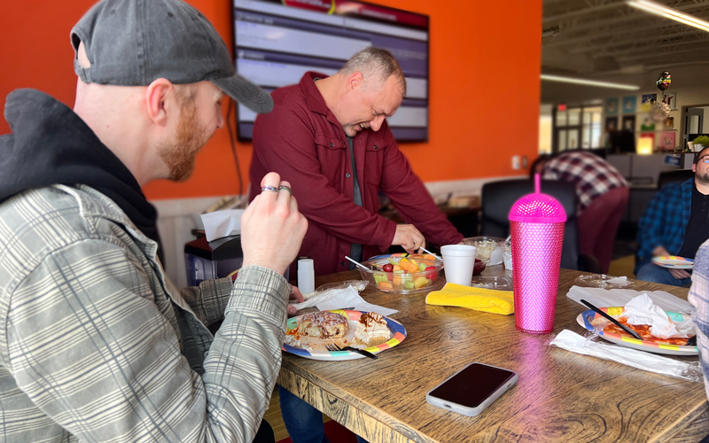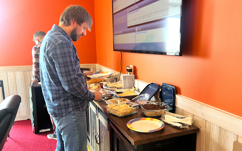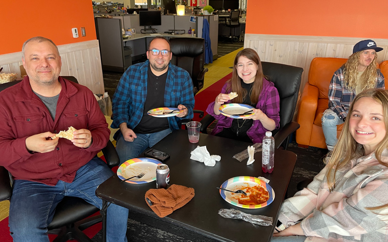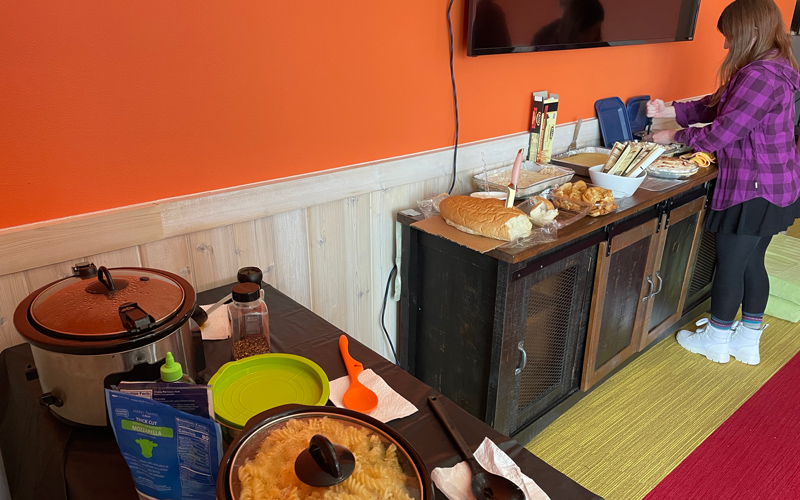 Thanksgiving is also a time for some cheer, creativity, and good food. A couple of departments joined together for a Flannel Friendsgiving over their lunch hour. As the name suggests, it was a potluck-style Thanksgiving lunch, but everyone wore their best flannels, too. The dishes ranged from traditional comfort food to sweet treats, including pasta, corn bread, cinnamon rolls, and various Rice Krispie bars.